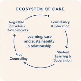 This enables us to provide supported student learning and supervision, which in turn allows us to offer free counselling to individuals who may otherwise face barriers to access.