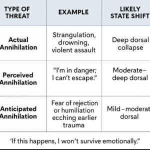 Our nervous systems run on neuroception—a pre-conscious scanning for safety or threat. It doesn’t wait for evidence. That’s why a perceived annihilation (“I can’t breathe”) can evoke the same shutdown sequence as an actual threat to life.